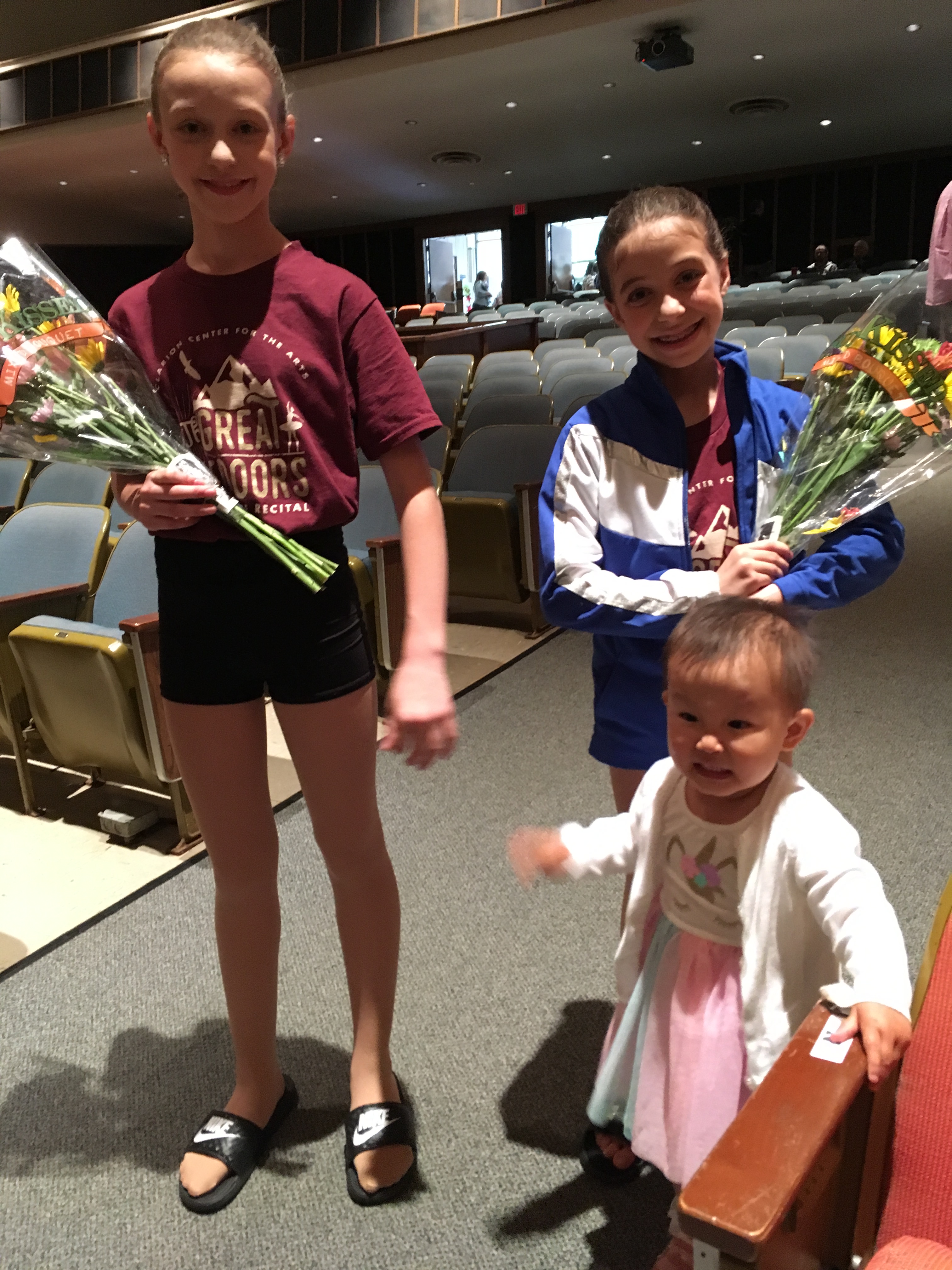 I wasn’t sure how the dance recital would go with Nora. I knew that she loved to dance but I wasn’t sure how she would do sitting quietly for two hours for multiple days watching dancers. She surprised me! She loved the recitals and during the Friday night show she watched each and every dance. I was trying to point out Dana on stage. (Which was difficult because Nora doesn’t know the words left, right, in front, behind, in the middle or on the end) While I was pointing Dana out to her she turned around and put her finger to her lips and shhhhed me. I guess I was talking to much!