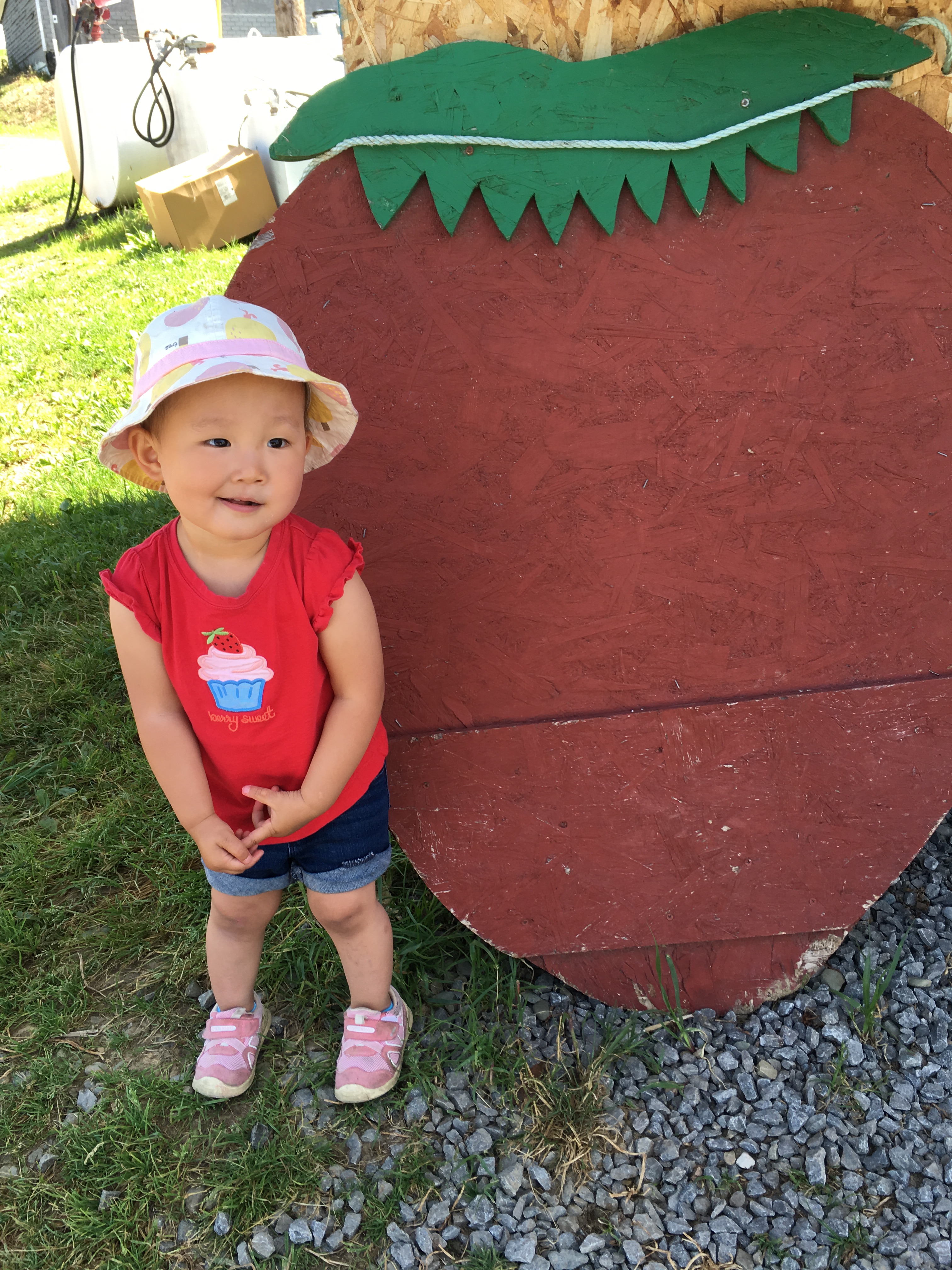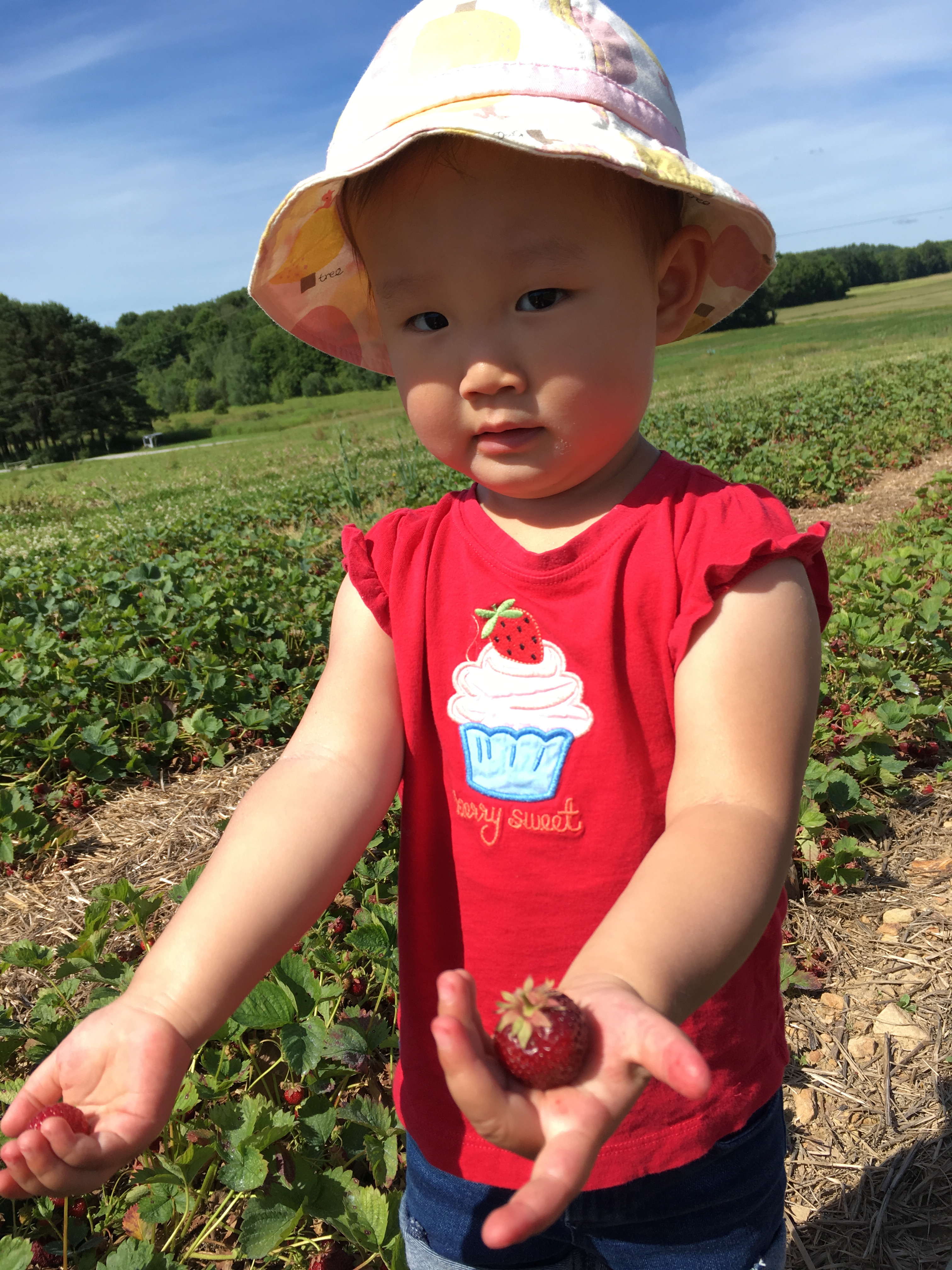 We took Nora to pick strawberries, thinking that maybe if she picked them she would be more willing to try them. She took a bite of one and then put it in the basket. Nope, that didn’t help the fruit adjustment.
