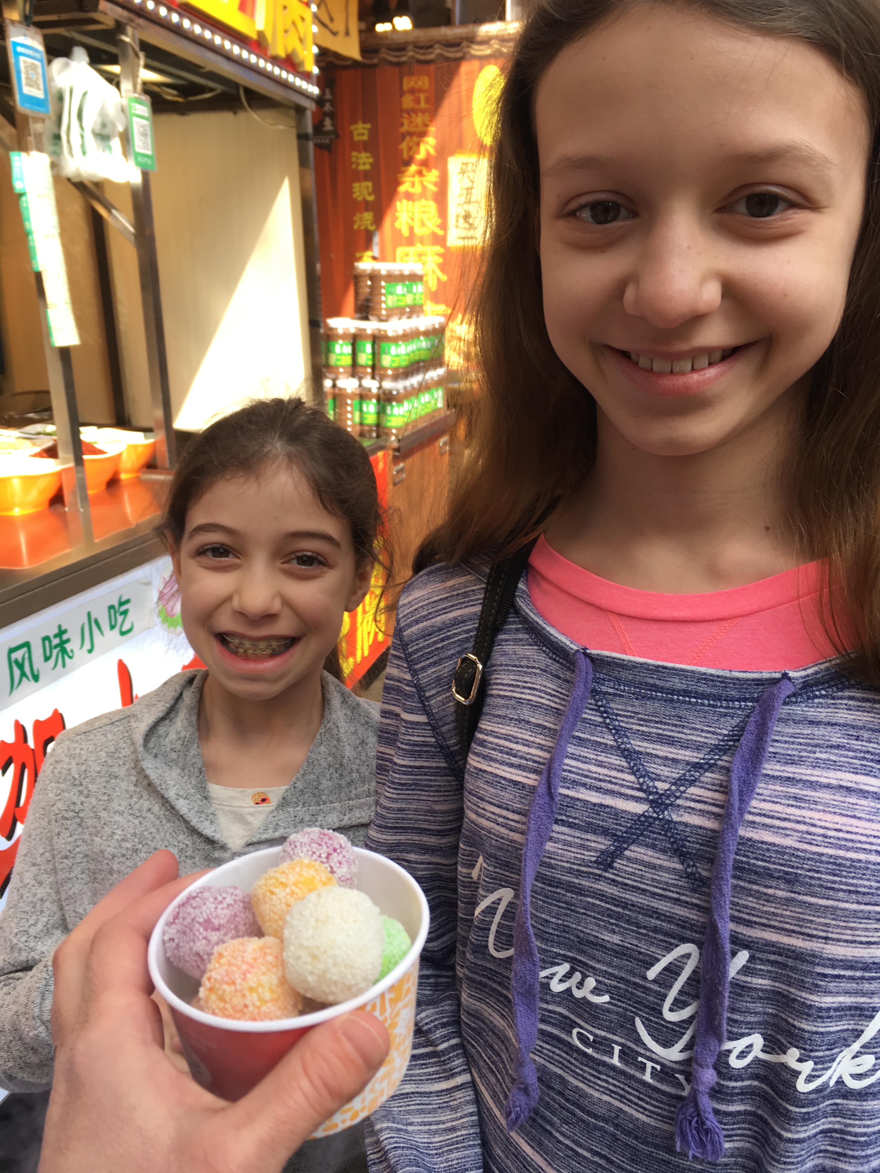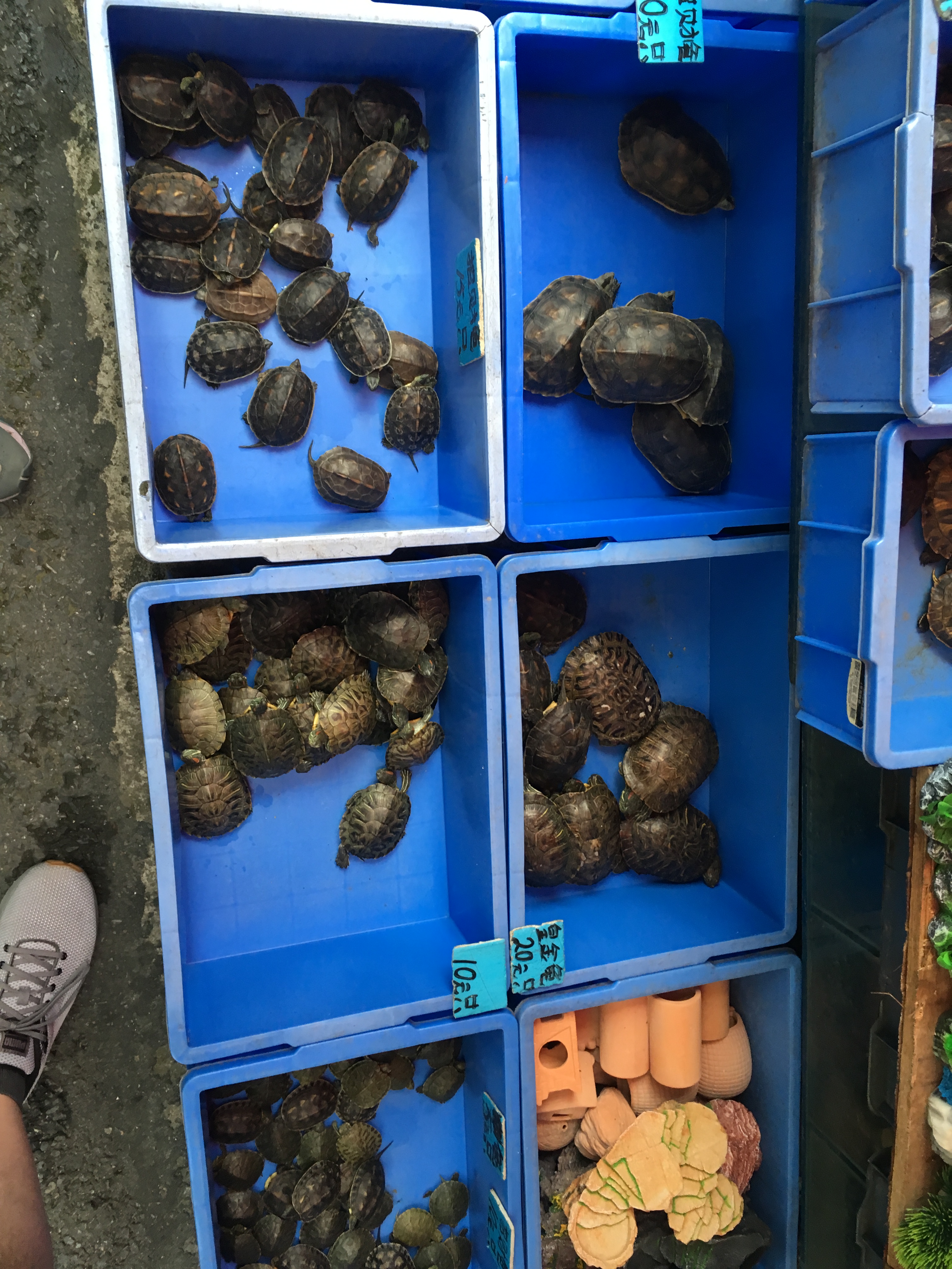 We call the street next to our hotel the pet street. All the shops along it sell different pets. They set the containers and cages of animals out on the sidewalk/street. There are many turtles and fish but they also have birds, rabbits, cats, dogs, mice and hamsters. Nora loves looking at all of these things. Dana really wants a Chinese turtle for her birthday. She wants to name it Lucky, Snapper or George. Clara and Dana want to get Corbin and Aiden white fish with red heads (the girls call them exploding brain fish) for their birthday. Don’t worry, we are drawing a line at foreign pets. I am not sure a turtle or fish would make it through customs.